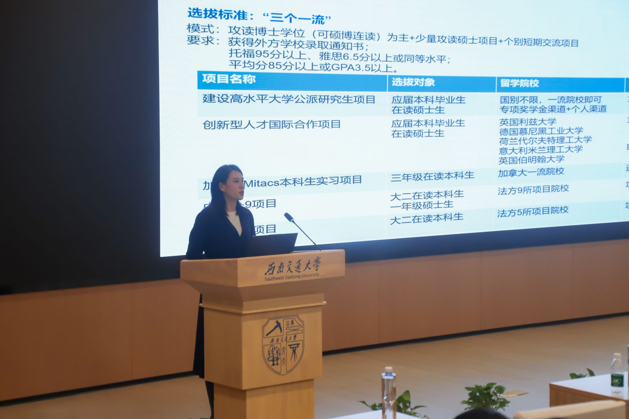 为助力员工拓宽国际视野,提升跨文化交际和生涯规划能力,2024年10月9日晚19时,beats365亚洲版官网本科2024级在犀浦校区图书馆一号、二号报告厅开展国际化视野与出国升学深造专题讲座。主讲人为beats365亚洲版官网国际合作与交流处副处长廖莉,出国(境)管理服务办公室主任杨帆,新东方前途出国留学规划师胡雪、唐溯阳。公司本科2024级辅导员及全体新生共同参加。