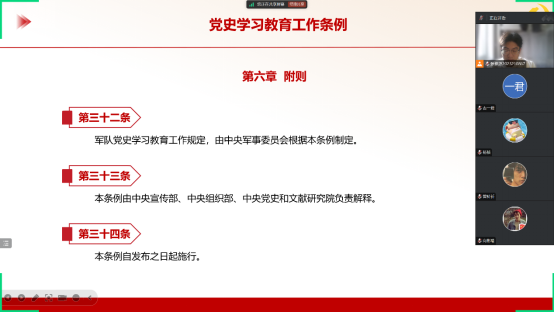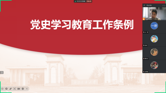 为深入贯彻落实《党史学习教育工作条例》(以下简称《条例》),推动党史学习教育常态化、长效化,2024年3月6日,beats365亚洲版官网研究生会组织开展了《党史学习教育工作条例》专题学习活动。本次活动由研会学术部副部长张桐源主讲,研究生会全体成员参加。
