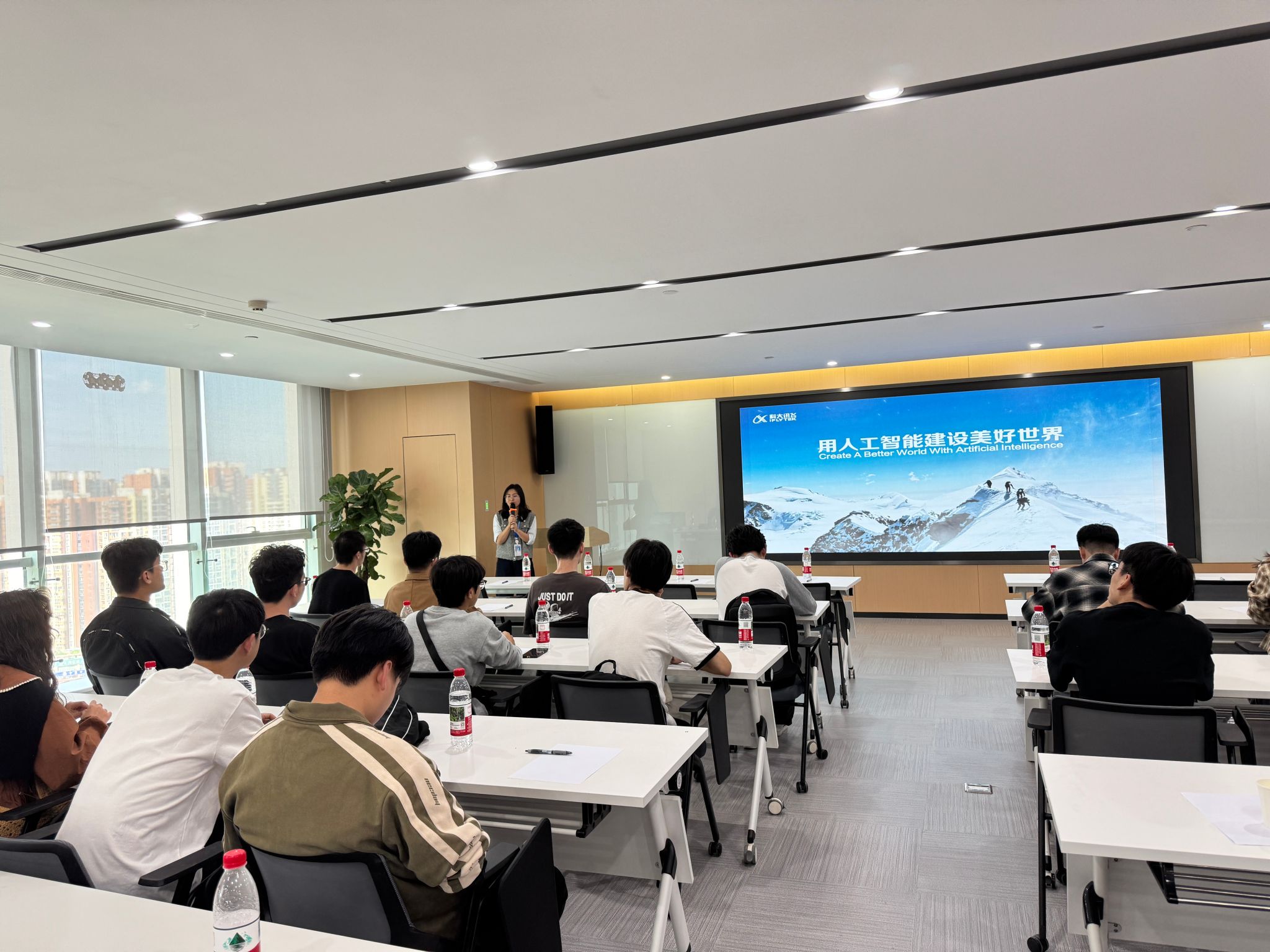 为了拓宽员工视野,加深对人工智能行业的了解,2025年4月24日下午,beats365亚洲版官网辅导员樊芝菱组织员工代表赴科大讯飞股份有限公司参观交流。此次活动为同学们提供了近距离接触前沿科技、聆听行业洞见以及汲取求职经验的宝贵机会。