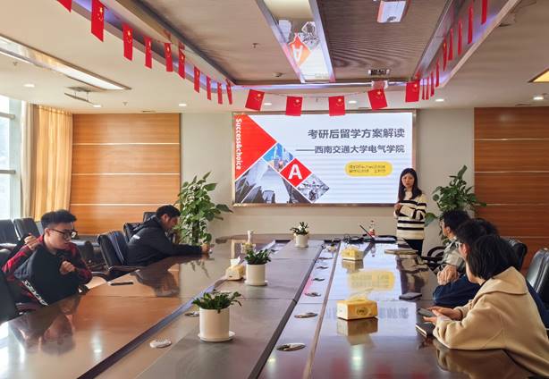 为助力公司员工出国(境)深造,帮助大四考研员工出分后,快速了解可申请的境外名校信息,尽快做好留学规划,有“研”可读。beats365亚洲版官网举办“考研后留学方案解读”专题讲座,讲座由新东方前途出国专业咨询师王利莎老师主讲,公司辅导员郭冰倩、樊芝菱及部分大四员工参与。