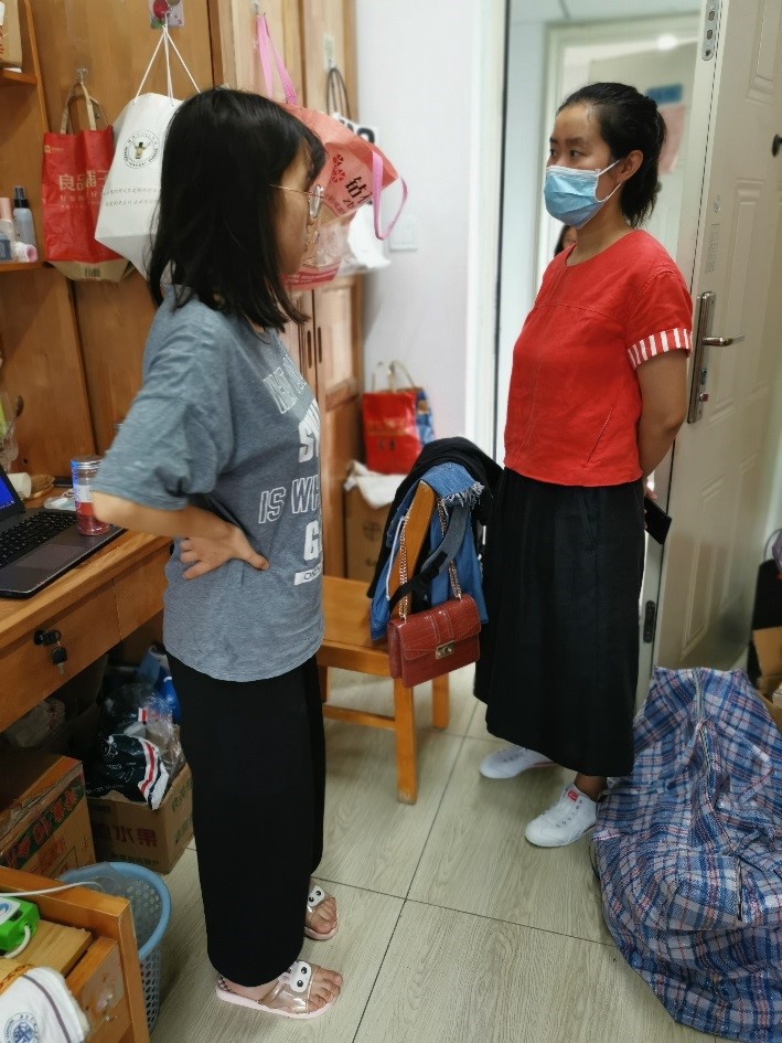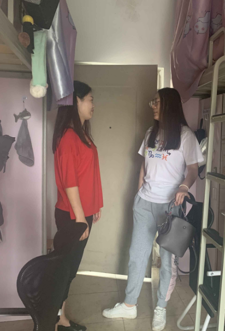 辅导员王喆桅、薛逸凡和林静英、樊芝菱分别走访了位于天佑斋2幢的硕2018级男、女生宿舍,与返校员工交流,了解大家返校后的生活情况,并提醒大家要注意毕业就业两条腿走路,合理安排好相关工作进度。