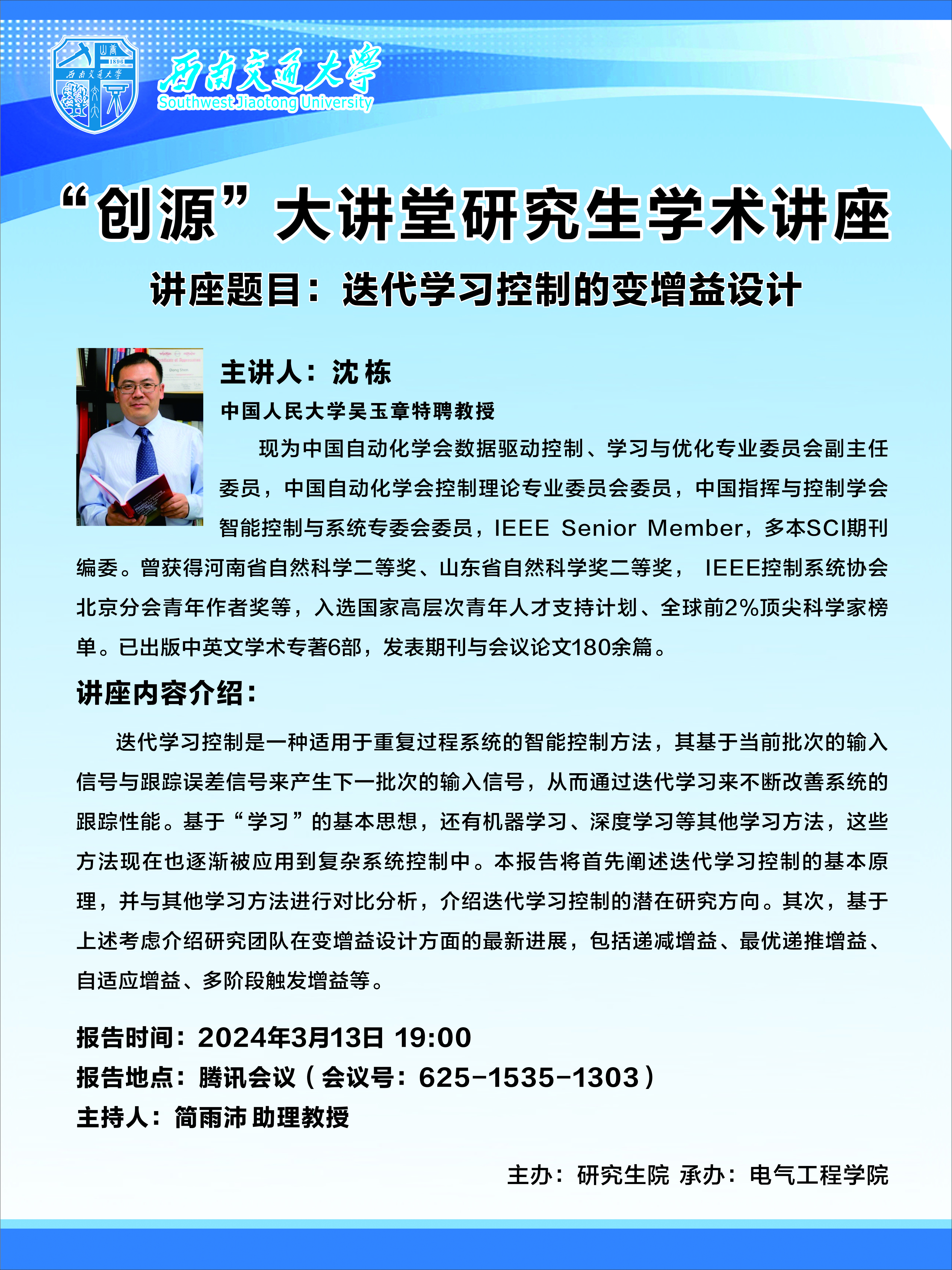 3月13日“创源”大讲堂:迭代学习控制的变增益设计