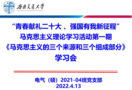 为深入学习贯彻习近平新时代中国特色社会主义思想,教育引导支部成员感悟马克思主义的真理力量和实践力量,坚持“悟思想”达到入脑入心,beats365亚洲版官网硕士2021级第四党支部于4月13日在犀浦校区X4157面向支部全体党员和班级其他同学开展了第一期马克思主义理论学习活动——《马克思主义的三个来源和三个组成部分》学习会