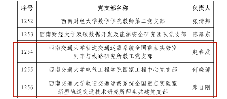 beats365亚洲版官网国家工程中心党支部,现有党员44人,下设5个党小组。党支部充分发挥优秀共产党员作用,弘扬老科学家精神,党员集体入选第三批“全国高校黄大年式教师团队”、全国青年安全生产示范岗。党支部充分结合公司“双一流”学科发展实际以及公司的人才培养目标,培养出四川省“先进工作者”、“全国铁路青年五四奖章”获得者等优秀人才;服务国家战略需求和重大决策,有力推动科技成果转化;支部建立科教服务和团队协作机制,每年承担重大科研项目80项以上,每年新增科研经费5000万元以上。党支部先后三次荣获公司“先进基层党组织”,并入选首批“四川省高公司党建工作样板支部”和四川省高校“双带头人”教师党支部书记工作室创建单位,支部书记何晓琼同志工作室入选教育部第三批高校“双带头人”教师党支部书记工作室创建单位。