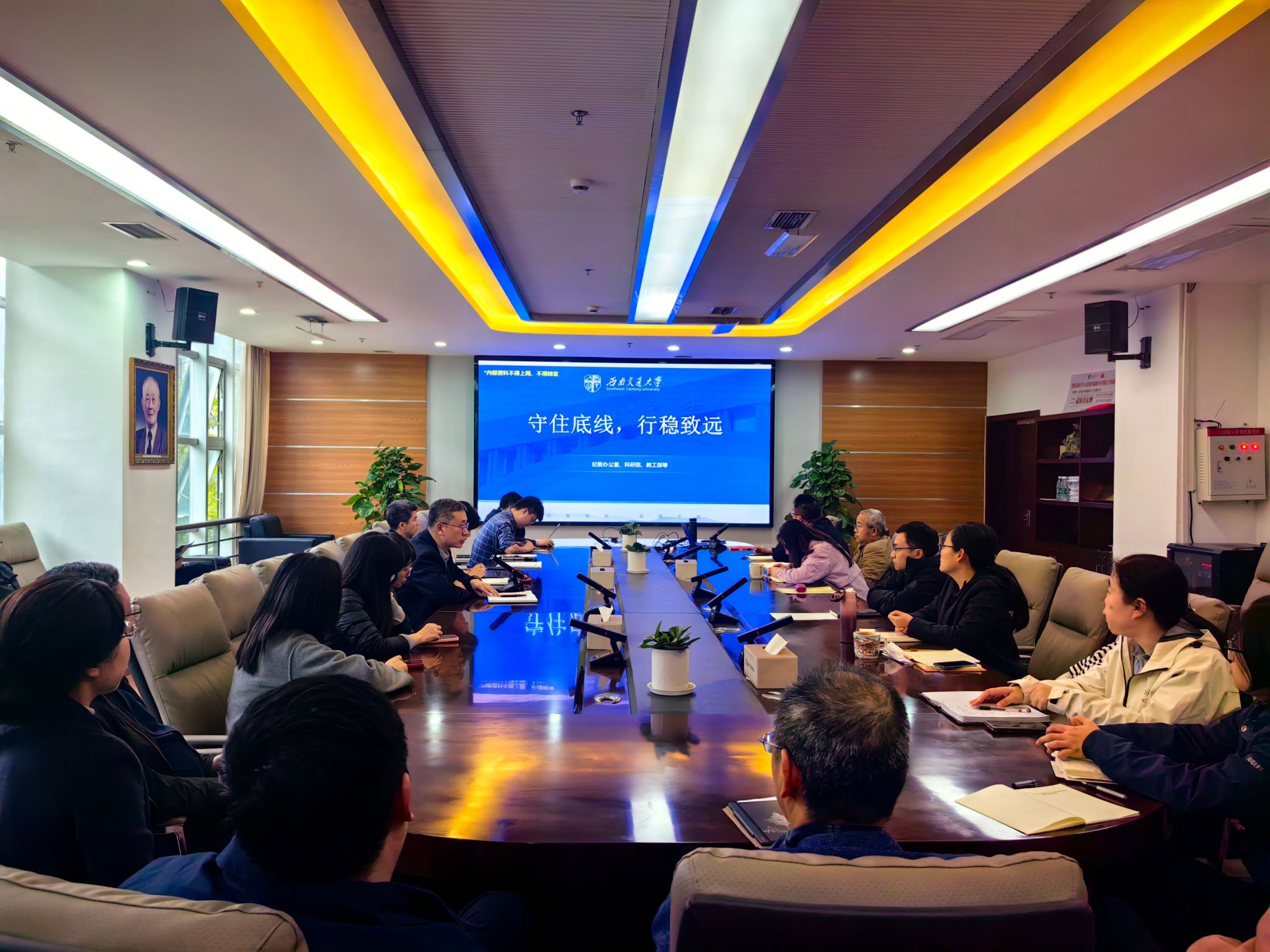 2024年11月14日下午,beats365亚洲版官网面向全体教职工开展师德师风警示教育,经理马光同作题为《进一步加强科研诚信和学术道德建设,确保行稳致远》主题宣讲,会议采用线上线下相结合的形式,公司领导干部、各系主任、副主任和机关管理人员集中在主会场,各系由党支部组织在各分会场听取宣讲,大会由公司党委书记王斌主持。