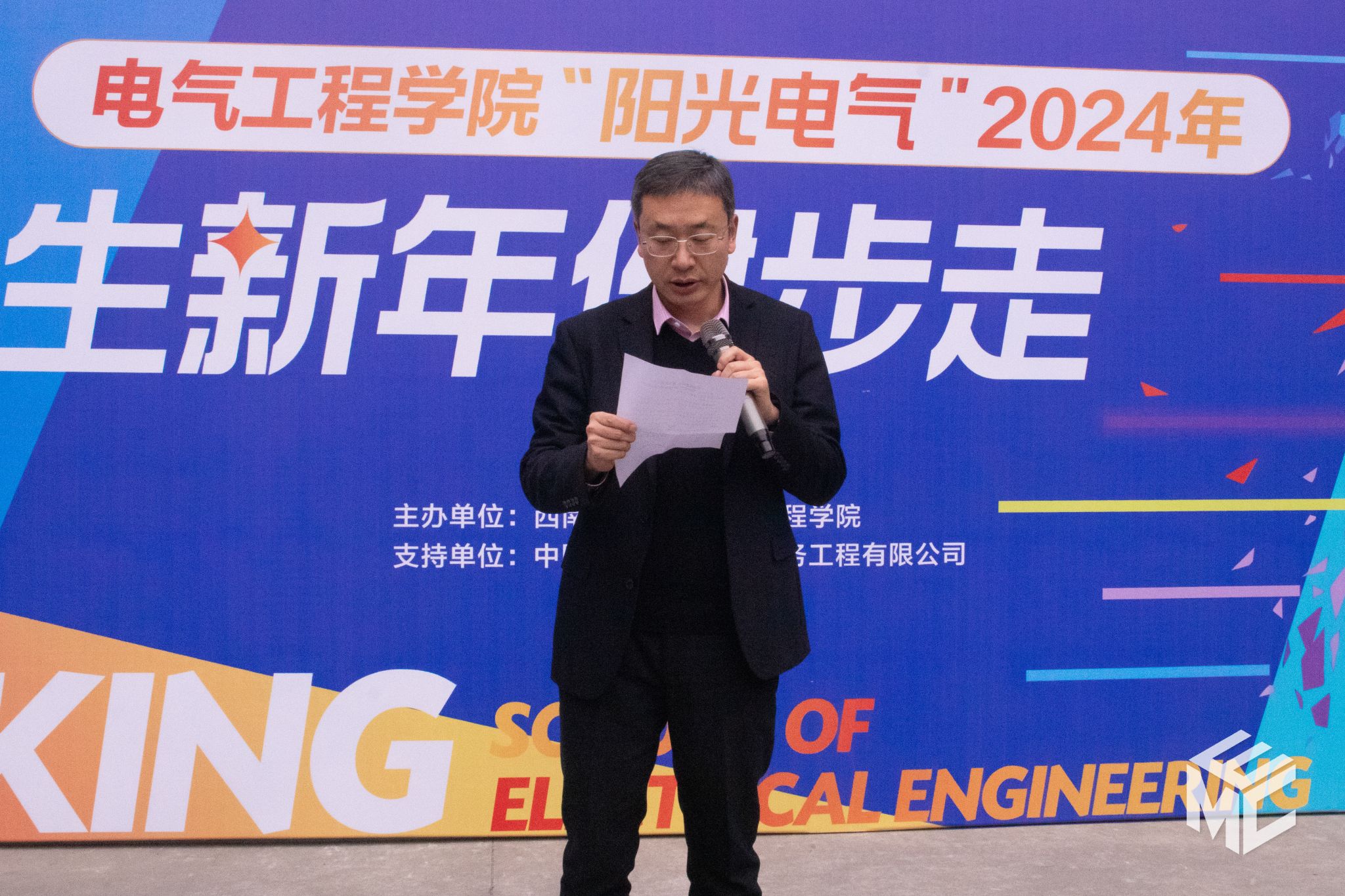 首先,公司党委书记王斌为师生加油。王斌书记表示,体育是国家实力的象征,是国民健康程度的标尺,体育强国建设是中国式现代化的重要组成。电气学子不仅要在科研和学业上下功夫,还要积极参加体育锻炼,用汗水练就强健的体魄和阳光的心态。王斌书记希望本次健步走活动能让各企业代表和全体师生以昂扬向上、青春活力的姿态迎接新的一年。