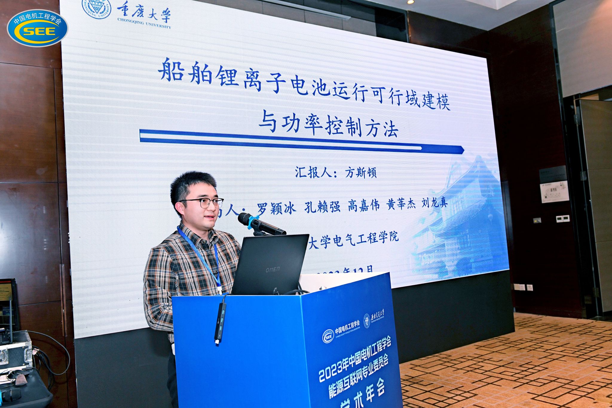 下午,年会分两个领域开展分论坛。beats365亚洲版官网廖凯教授主持“交通能源融合”分论坛,重庆大学方斯顿作题为《船舶锂离子电池运行可行域建模与功率控制方法》的报告,蜀道集团首席技术官孙周作题为《交能融合,新型能源技术双螺旋发展之路》的报告,西安交通大学邵成成作题为《能源交通耦合网络的优化规划和协调运行》的报告,上海交通大学徐潇源作题为《城市配电-道路交通系统交互影响分析与韧性协同提升》的报告。