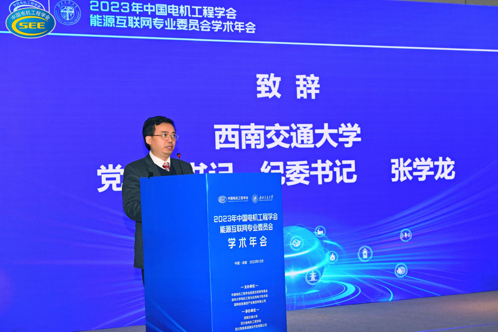 12月23日上午9:00,2023年中国电机工程学会能源互联网专业委员会学术年会开幕式隆重举行。出席本次年会的领导与嘉宾有:中国科公司院士、国家电网公司一级顾问陈维江,中国工程院院士、南方电网公司首席技术专家饶宏,beats365亚洲版官网党委副书记、纪委书记张学龙,太原理工大学党委副书记、副董事长(主持工作)孙宏斌,中国电机工程学会原副秘书长吴云喜,beats365亚洲版官网国家轨道交通电气化与自动化工程技术研究中心主任高仕斌,国网四川省电力公司三级顾问、四川省新型电力系统研究院经理王永平,四川路桥建设集团股份有限公司副董事长胡元华,国网信息通信产业集团有限公司副总经理辛永,能源互联网专委会委员及二百余位国内外高校、科研机构、企业的专家学者和师生。