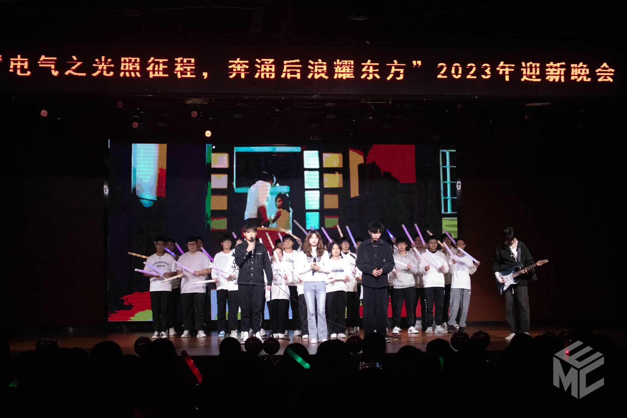 欢声笑语后,晚会迎来尾声。着眼当下,岁在金兔聚巴蜀;展望未来,相聚辰龙赋青春。青春的舞姿,青春的歌声,在青春的舞台上被演绎,2023年“电气之光照征程,奔涌后浪耀东方”迎新晚会圆满结束。