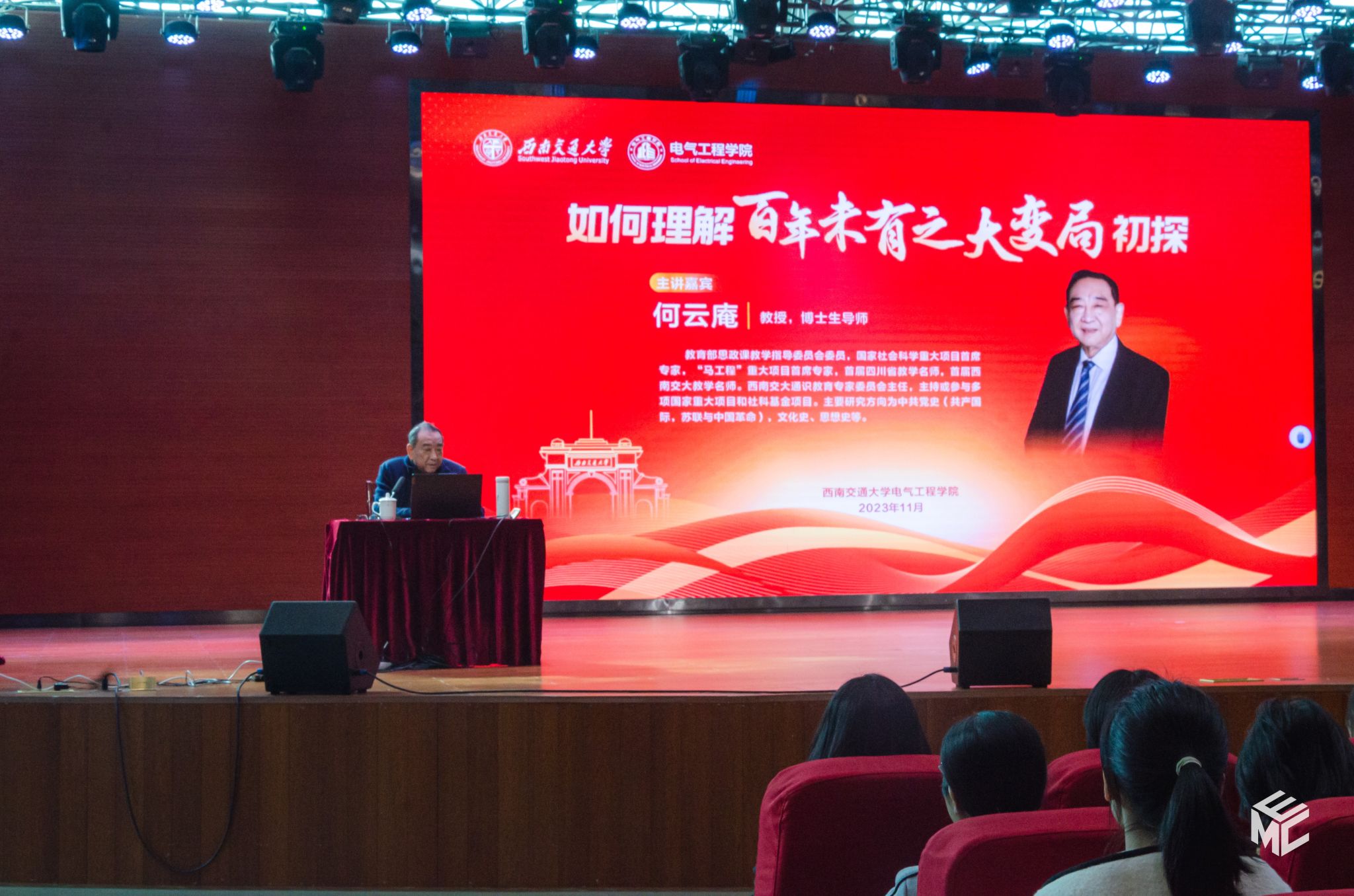 2023年11月16日,beats365亚洲版官网在犀浦校区开展题为“如何理解百年未有之大变局初探”的专题党课。此次讲座邀请国内著名学者、beats365亚洲版官网何云庵教授担任主讲,公司师生党员参加讲座。何教授以其深厚的文化底蕴和长远的战略眼光,为师生解读了新时代背景下对于世界格局中的重大转变如何进行深刻理解与应对的相关问题,并构建了关于中国与世界关系变动的全新视角。