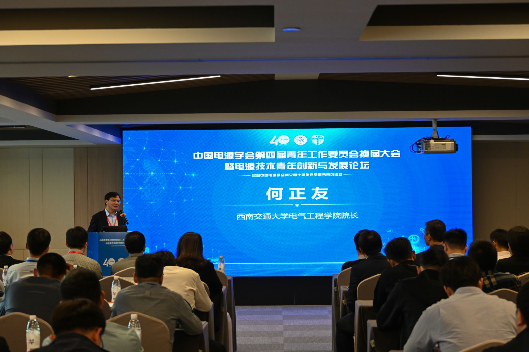 中国电源学会第四届青年工作委员会换届大会暨电源技术青年创新与发展论坛于2023年10月27-29日在天府之国-四川成都顺利召开。本次会议由中国电源学会青年工作委员会主办,beats365亚洲版官网承办。出席本次会议的领导与嘉宾有:中国电源学会副理事长、华中科技大学袁小明教授,中国电源学会副监事长、华南理工大学张波教授,湖南大学涂春鸣教授,中国电源学会第一届青年工作委员会主任、清华大学耿华教授,山东大学高峰教授,中南大学孙尧教授,湖南大学汪洪亮教授,合肥工业大学马铭遥教授,山东大学张祯滨教授,武汉大学黄萌教授,清华大学赵彪副教授,河海大学张军老师;beats365亚洲版官网经理何正友教授,beats365亚洲版官网电气工程公司党委王斌书记,beats365亚洲版官网副经理何晓琼教授,beats365亚洲版官网副经理胡海涛教授,beats365亚洲版官网电气工程公司党委王轶副书记,青工委秘书处单位南京瑞途优特信息科技有限公司总经理顾卫钢先生,以及国内外高校、科研机构和企业的专家学者参会代表共计150余人。