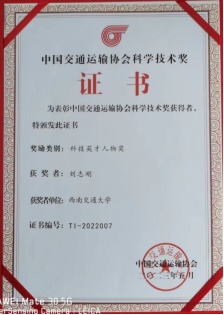 公司刘志刚教授获2022年中国交通运输协会科技英才人物奖