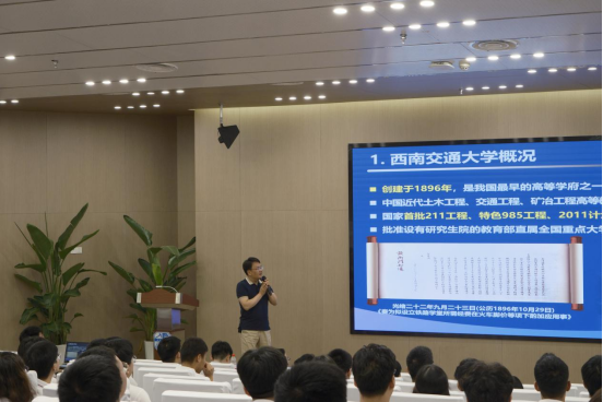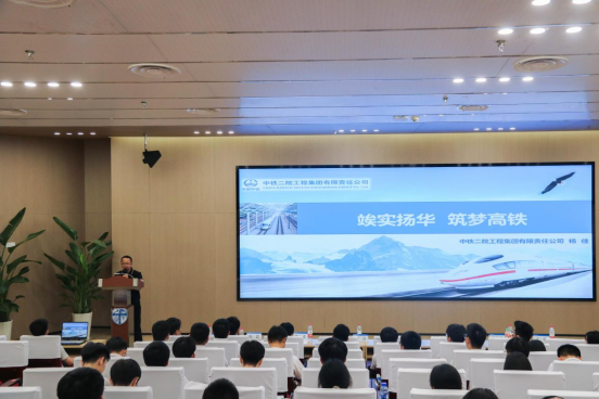 接着,员工代表中铁二院专家总工杨佳给同学们分享了自己二十余年的工作经历,介绍了自己的工作生活环境,表达了对同学们的热切期盼,希望同学们能够做好自己的选择,设计好自己美好的未来,创造自己的历史。