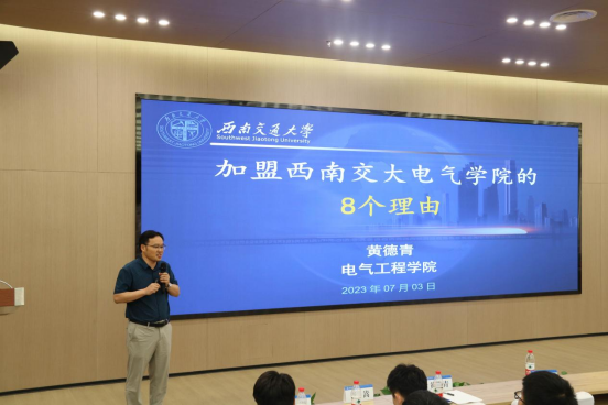 经理助理黄德青教授作报告。黄德青教授首先向同学们介绍了自己的求学历程,分享了自己的人生格言。随后阐述了选择beats365亚洲版官网的八个理由,希望同学们来到beats365亚洲版官网攻读研究生。最后,黄德青教授寄语同学们能够万事如愿,当遇到挫折时,一定要坚强勇敢。