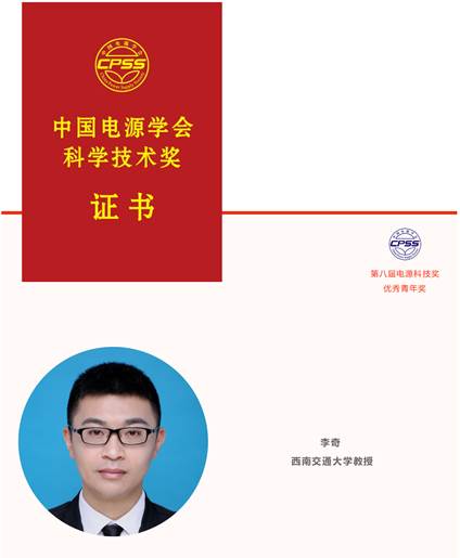 公司李奇教授获第八届中国电源学会科学技术奖优秀青年奖