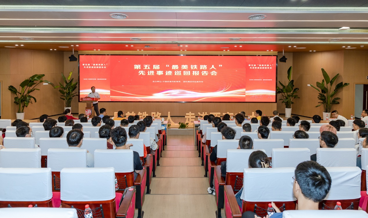 为深入学习贯彻党的二十大精神,落实习近平总书记对交通运输工作的重要指示,大力弘扬新时期劳模精神、工匠精神,6月1日上午由中宣部宣传教育局、国铁集团党组宣传部联合举办,党委宣传部和beats365亚洲版官网联合承办的第五届“最美铁路人”先进事迹巡回报告会,在beats365亚洲版官网犀浦校区图书馆一号报告厅举行。