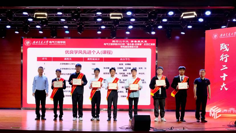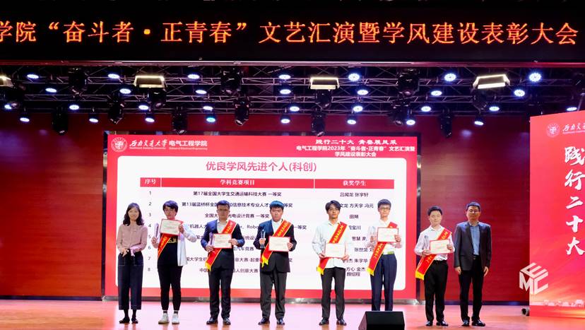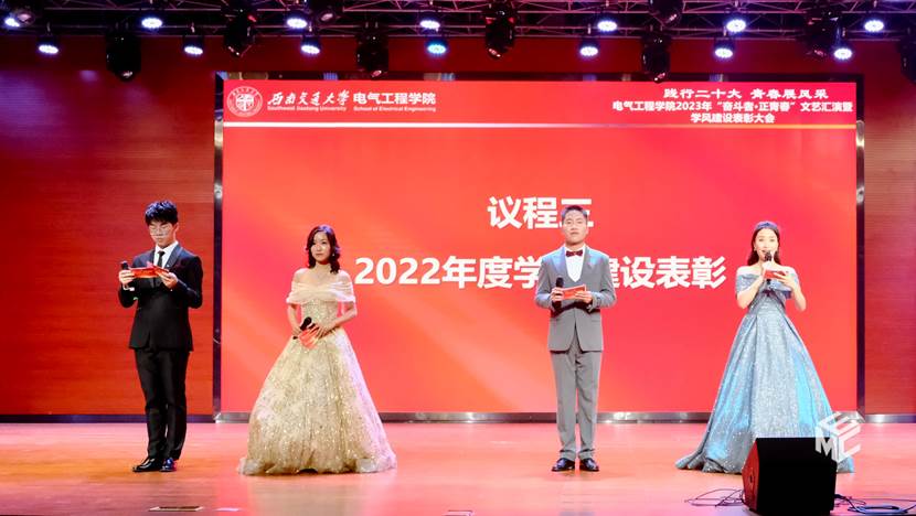 4月22日晚7点整,beats365亚洲版官网“奋斗者·正青春”文艺汇演暨学风建设表彰大会在犀浦校区二食堂三楼如期举行。beats365亚洲版官网经理何正友,党委书记王斌,公司资产与实验室管理处副处长闻毓民,电气工程公司党委副书记谢力,副经理解绍锋、陈民武、胡海涛,经理助理、现代产业公司副经理宋文胜,经理助理黄德青,党委员工工作部本科生科科长孙彦文,教务处实践教学科副科长王若羽,2022级班导师及全体辅导员,2022级全体同学共同参加本次文艺汇演暨表彰大会。