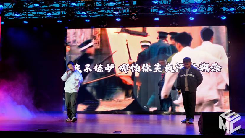 篇章末尾是由电气8班吴宏伟、龙弈丞演唱的歌曲《不服》,将现场气氛推向了高潮。歌如其名,演唱者用自己的激情点燃了会场,体现了青年员工的热血拼搏和不服输不气馁的精神。