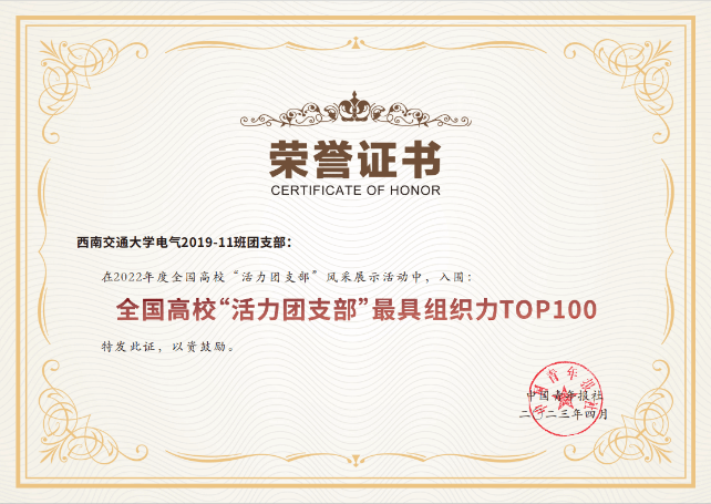 她的员工先后获beats365亚洲版官网十佳团支部书记、成都市“金牛骄子大使” (全市仅十名)等个人荣誉,所带班级先后获评beats365亚洲版官网“忠忱班集体”、“校级示范团支部”、2022年度全国高校“活力团支部”最具组织力TOP100榜等集体荣誉。