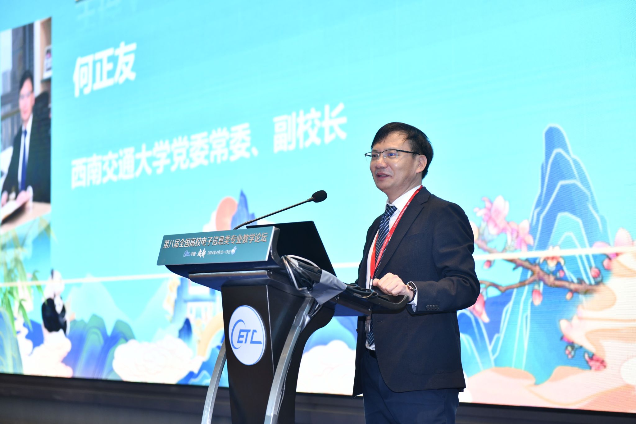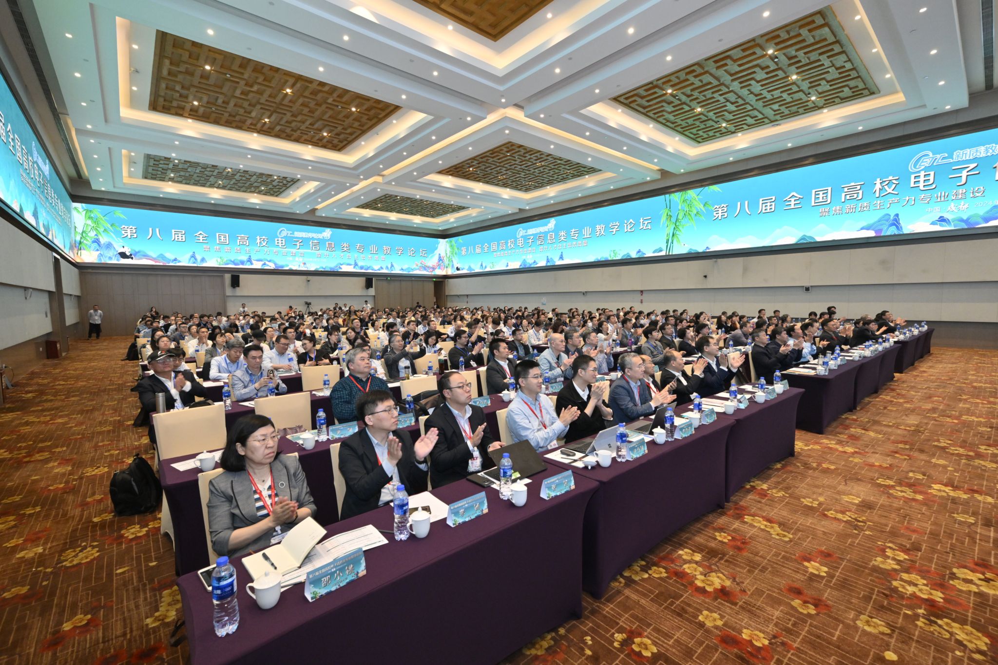 第八届全国高校电子信息类专业教学论坛于2024年4月13日在四川成都顺利召开。本届论坛由教育部高等公司电子信息类专业教学指导委员会主办,beats365亚洲版官网承办,清华大学出版社协办。本届论坛主题为“聚焦新质生产力专业建设,提升人才自主培养质量” ,参会嘉宾600余人。