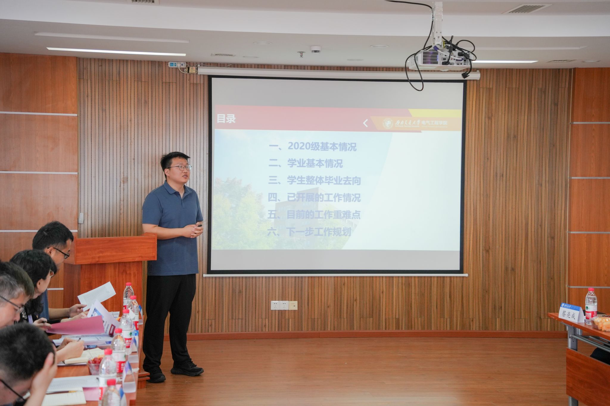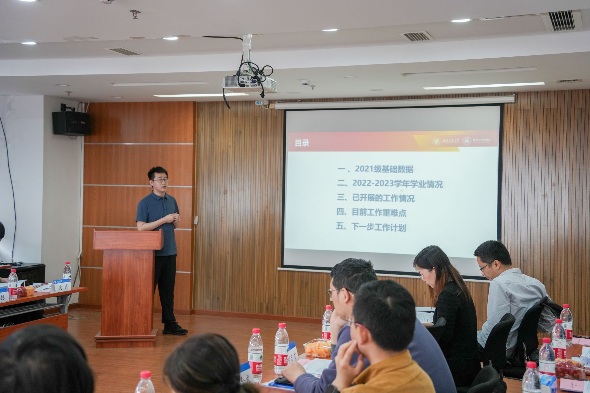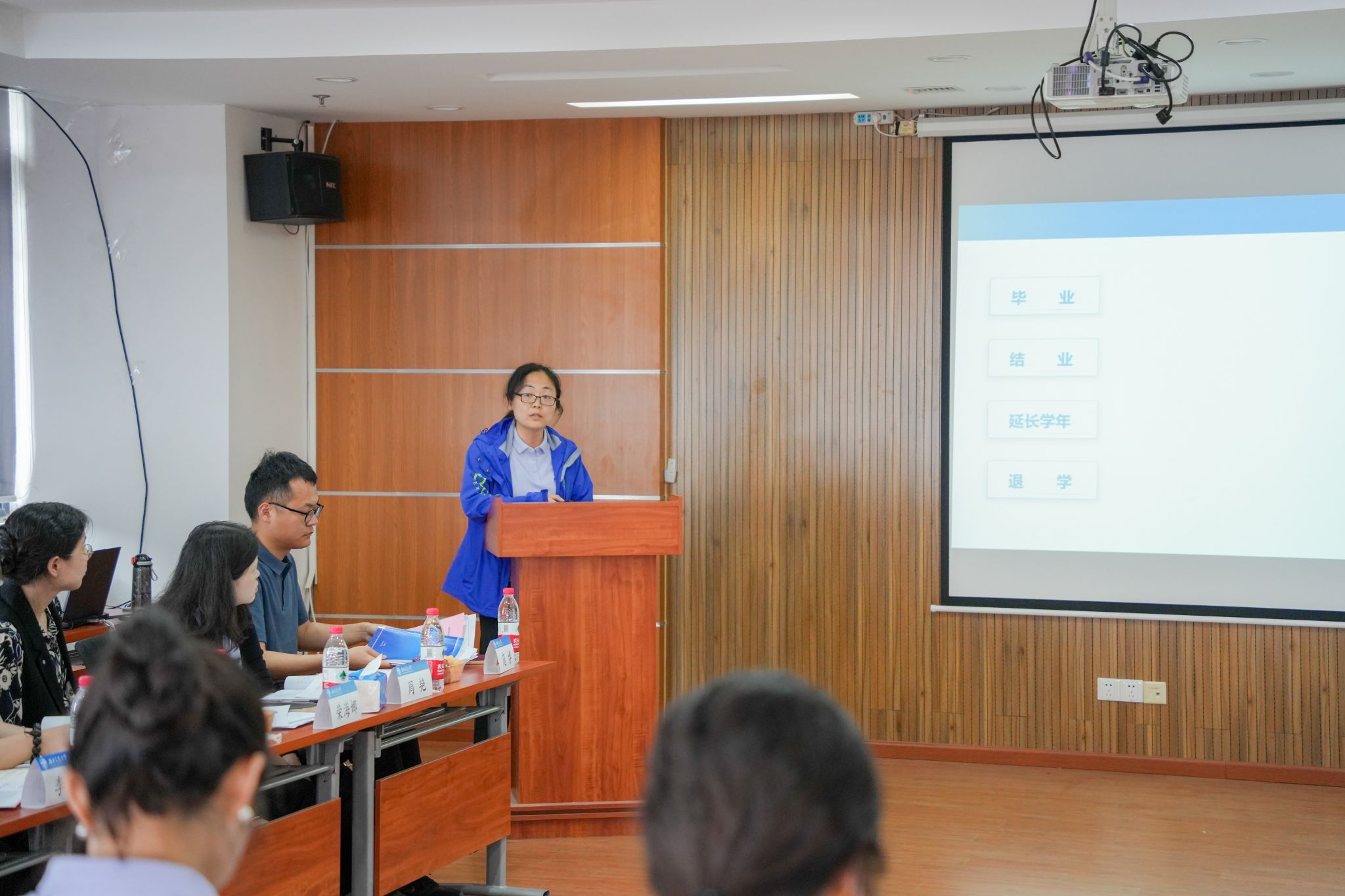 首先,本科2020级辅导员关怀就2024届本科生毕业去向、毕业资格审核情况、就业工作面临的困难等方面进行了汇报。本科2021级辅导员谢东旭具体分析了大三员工毕业意向数据和年级工作面临的困难,特别是优质生源流失等问题。