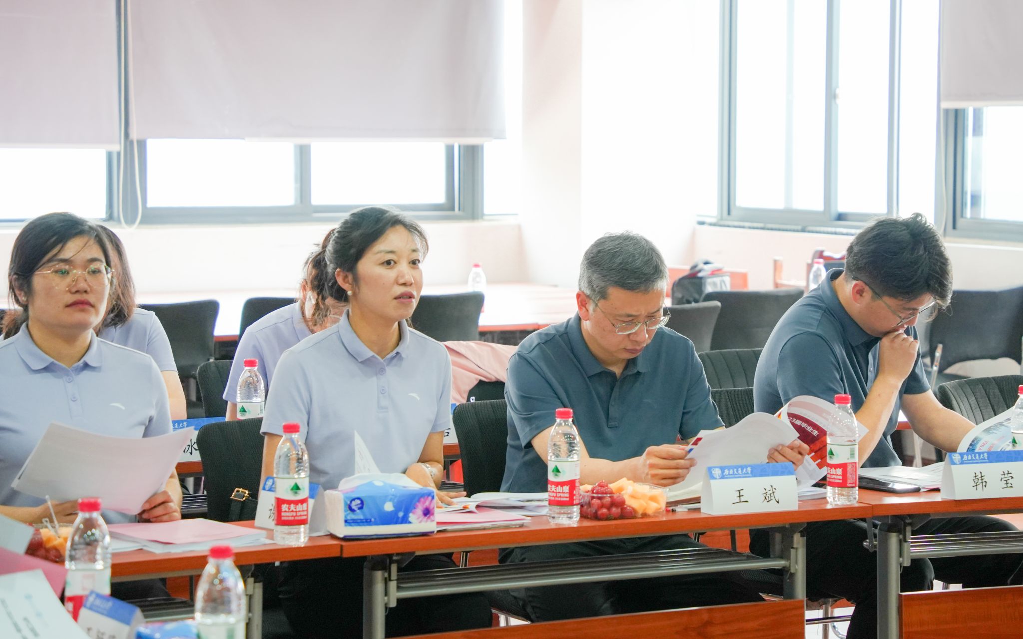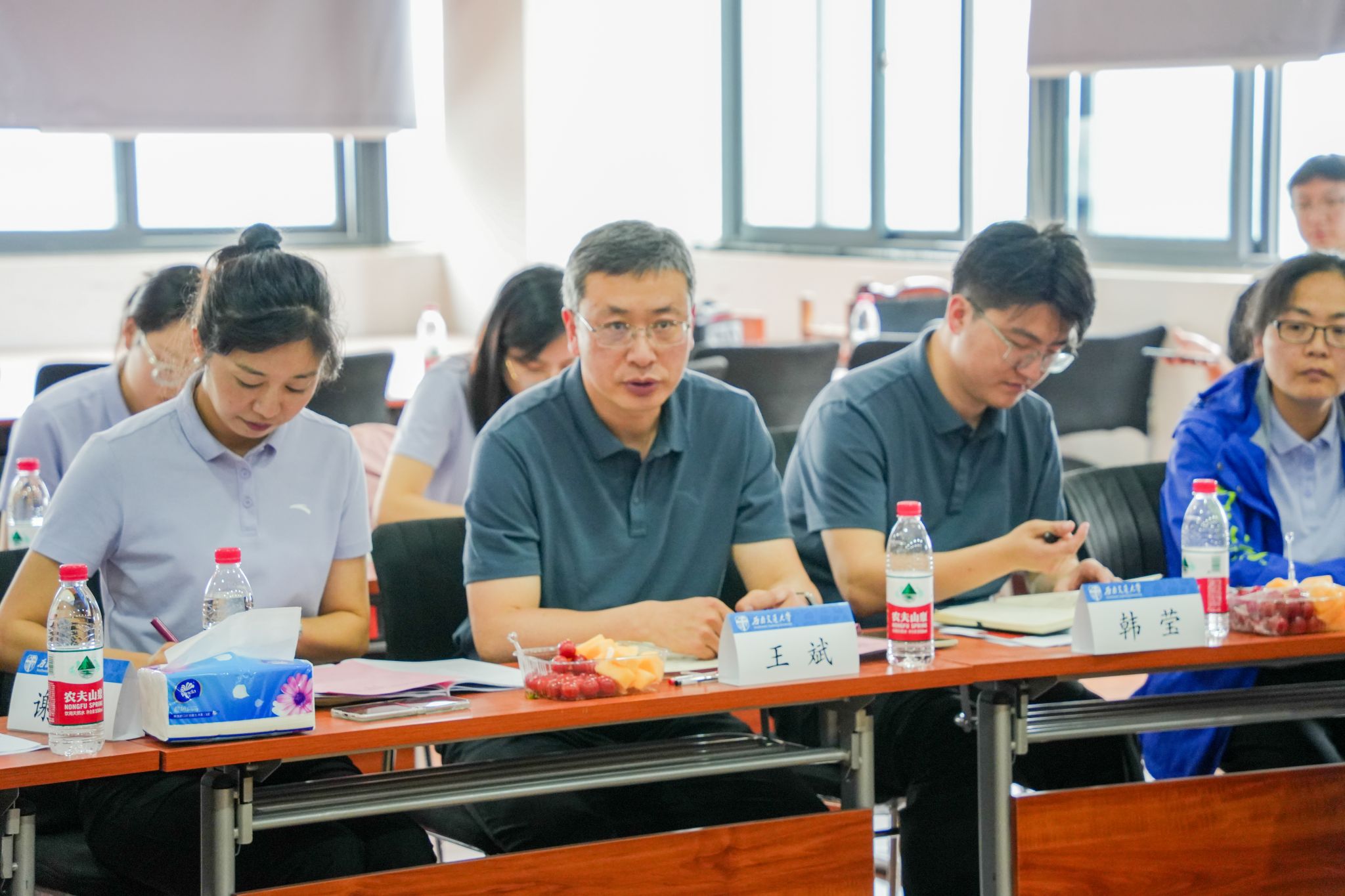 王斌书记在总结中对班导师与辅导员的辛勤付出表示肯定,并指出本次联席会高效实现了双方的信息共享,有利于更精准地为员工提供指导和服务,期待后续能常态化开展教学-学工联席交流活动。立德树人是新时代教育的根本任务,王斌书记希望全体老师要发挥好自身的引领作用,引导员工做好个人发展规划。