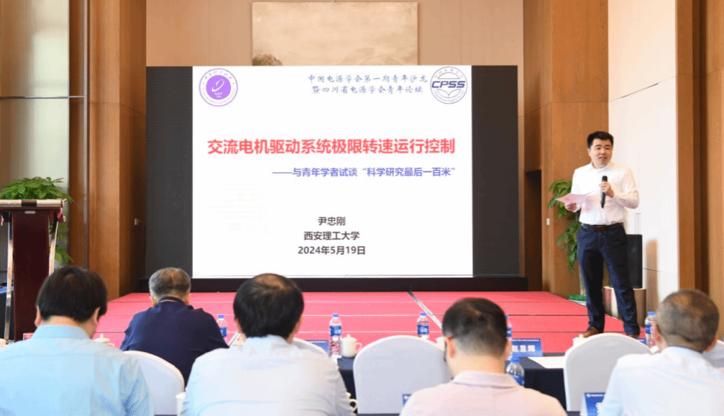 西安理工大学尹忠刚教授作题为《交流电机驱动系统极限转速运行控制——与青年学者谈“科学研究的最后一百米”》的报告,主要从异步电机低速无传感器控制、PMSM初始位置估计与低速控制、交流电机其它特殊运行状态三个方面进行分享。天津工业大学梅云辉教授作题为《电力电子元器件高可靠封装——谈“但行好事,莫问前程”对青年学者的指引作用》的报告,结合自身科研经历与研究成果,寄语青年学者要根据自身兴趣与能力来选择研究方向,切忌追随热点。四川大学王顺亮副教授作题为《级联H桥变流器多采样控制与高次谐波抑制研究》的报告,从多采样实时控制、单电压传感器均压、均压控制能力与优化、边带谐波抑制几个方面进行分享。