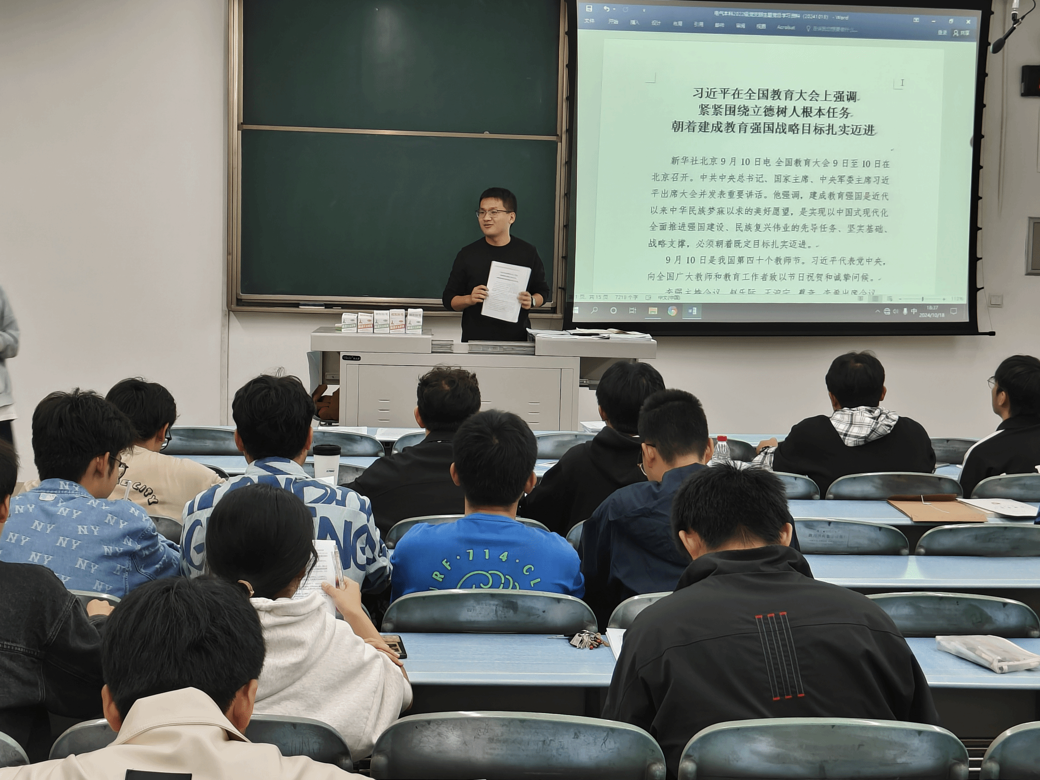本科2024级党支部于10月15日开展学习贯彻全国教育大会精神主题党日并重温入党誓词。支部书记艾效天带领全体党员共同学习习近平总书记在全国教育大会上的重要讲话精神。与会员工党员结合自己当下的学习状态与规划,分享了感想与体会,纷纷表示要坚持学思践悟,提升政治素养,锤炼品德修为,不断增强本领。