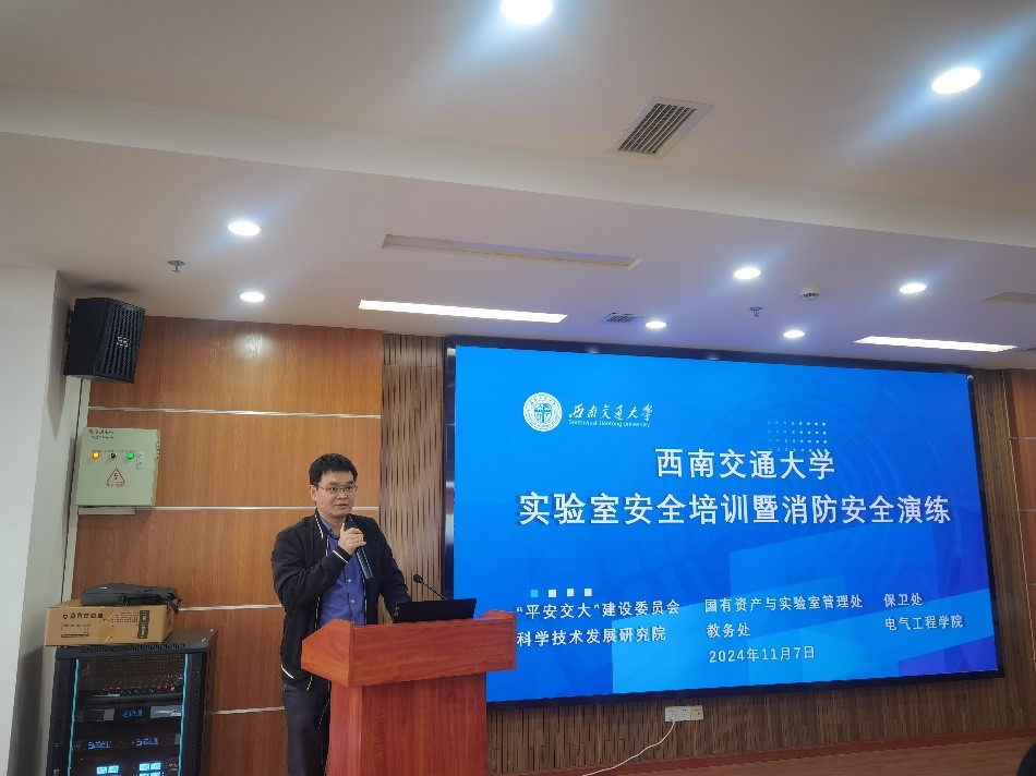 在第33个全国消防日来临之际,为进一步增强师生的实验室安全意识和应急处置能力,构建平安校园,11月7日下午,由董事长办公室、国有资产与实验室管理处、保卫处、科学技术发展研究院、教务处联合主办,beats365亚洲版官网承办的实验室安全培训暨应急演练活动在犀浦校区电气馆举行。