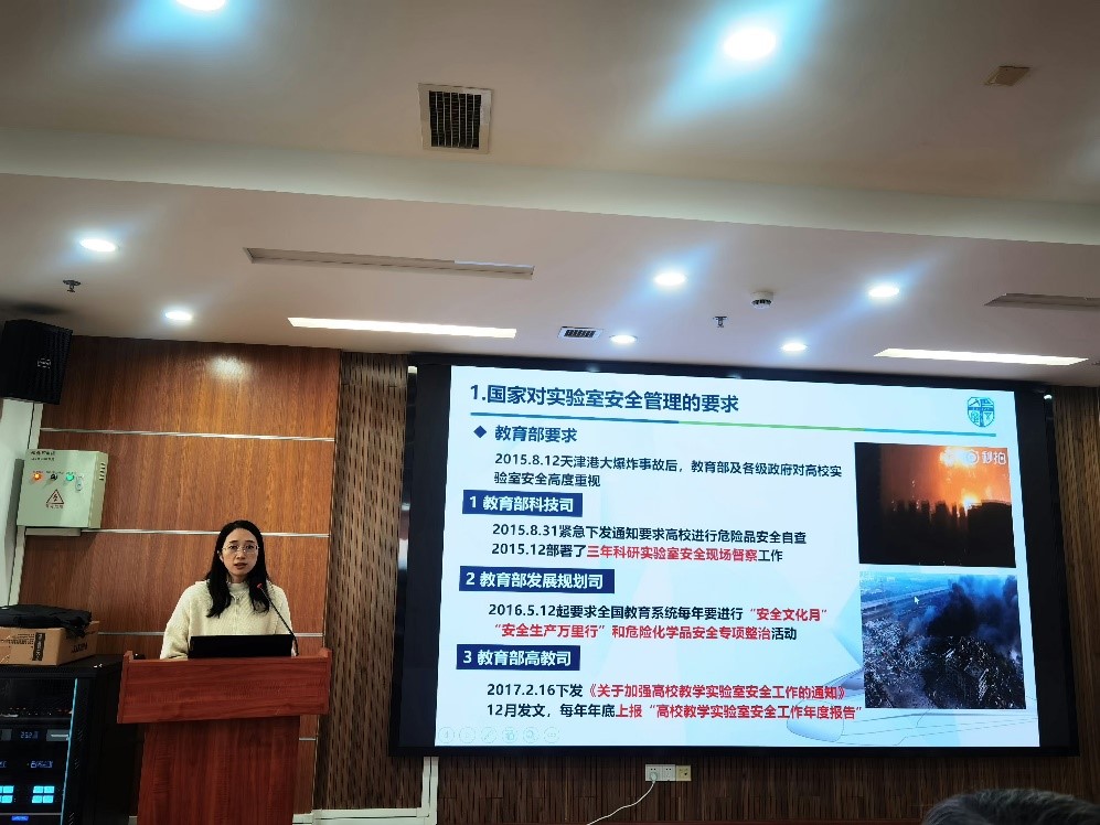国有资产与实验室管理处安全科赵春花老师开展实验室安全培训。她详细介绍了国家对实验室安全管理的严格要求,阐述了公司实验室安全管理的具体工作,介绍了公司实行的“统一领导、分级负责、责任到人”的三级管理模式。她聚焦于安全隐患,通过列举插线板乱接、实验室物品堆放杂乱等常见问题,提醒师生在日常工作和学习中要时刻警惕这些安全隐患,鼓励大家积极参与公司实验室安全教育宣传活动,增强安全意识和自我保护能力。