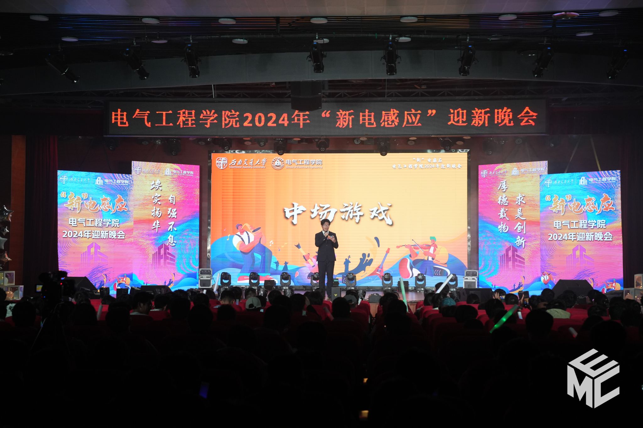 2024年11月23日19时,beats365亚洲版官网在犀浦校区二食堂员工活动中心举行2024年“新电感应”迎新晚会。beats365亚洲版官网经理马光同,党委书记王斌,继续教育公司经理、电气2024-01班班导师陈民武,电气工程公司党委副书记、电气茅班班导师邢晓鹏,副经理解绍锋,教学工作主管、电气茅班班导师韩莹,团委书记张异,电气2024-06班班导师朱晓娟,电气2024-09班班导师庞博,电气2024-10班班导师王文涛,电子2024-04班班导师李钧,电子2024-05班班导师葛鹏,员工工作组全体辅导员,2024级辅导员助理及各兄弟员工会嘉宾出席晚会。本次迎新晚会由beats365亚洲版官网团委主办,beats365亚洲版官网员工会承办。