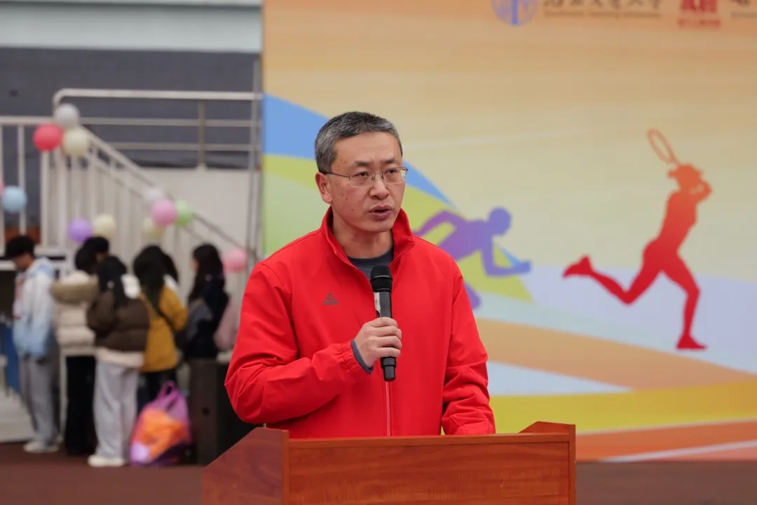 王斌书记向筹办本次运动会的老师和同学表示感谢,鼓励同学们以饱满的热情、昂扬的斗志融入比赛,做青春阳光的电气少年,也希望同学们将运动场上坚韧不拔的毅力、昂扬向上的精神投入到今后的学习和生活中去,努力学习、积极进取,为实现中国梦贡献自己的青春力量。