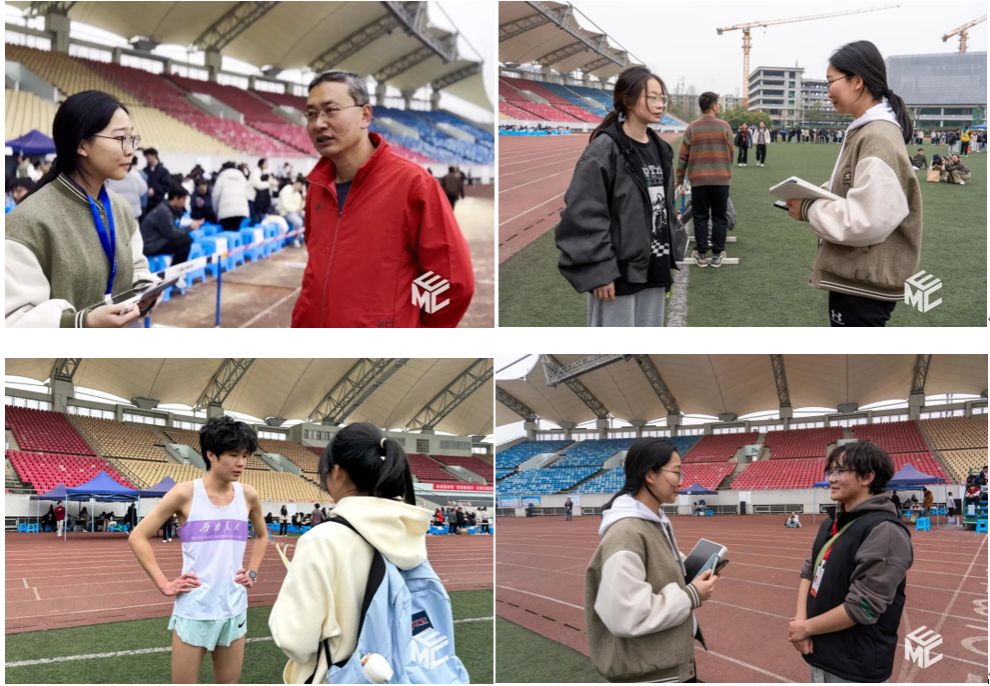 会后,EMC记者采访了王斌书记、女子100米冠军郑欣芮、男子1000米冠军李昊阳以及工作人员韦潇,他们表示运动能给人精神、给人鼓励,希望同学们都能走出寝室,积极参与体育锻炼,提高身体素质,感受运动的乐趣。