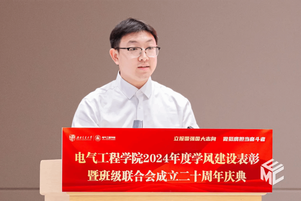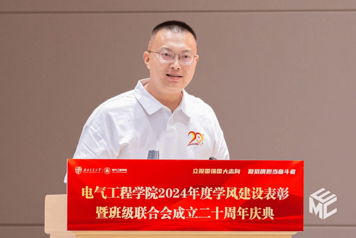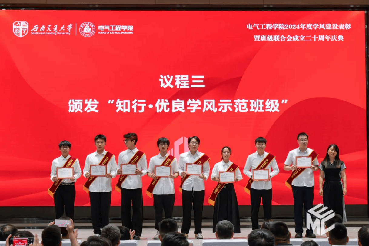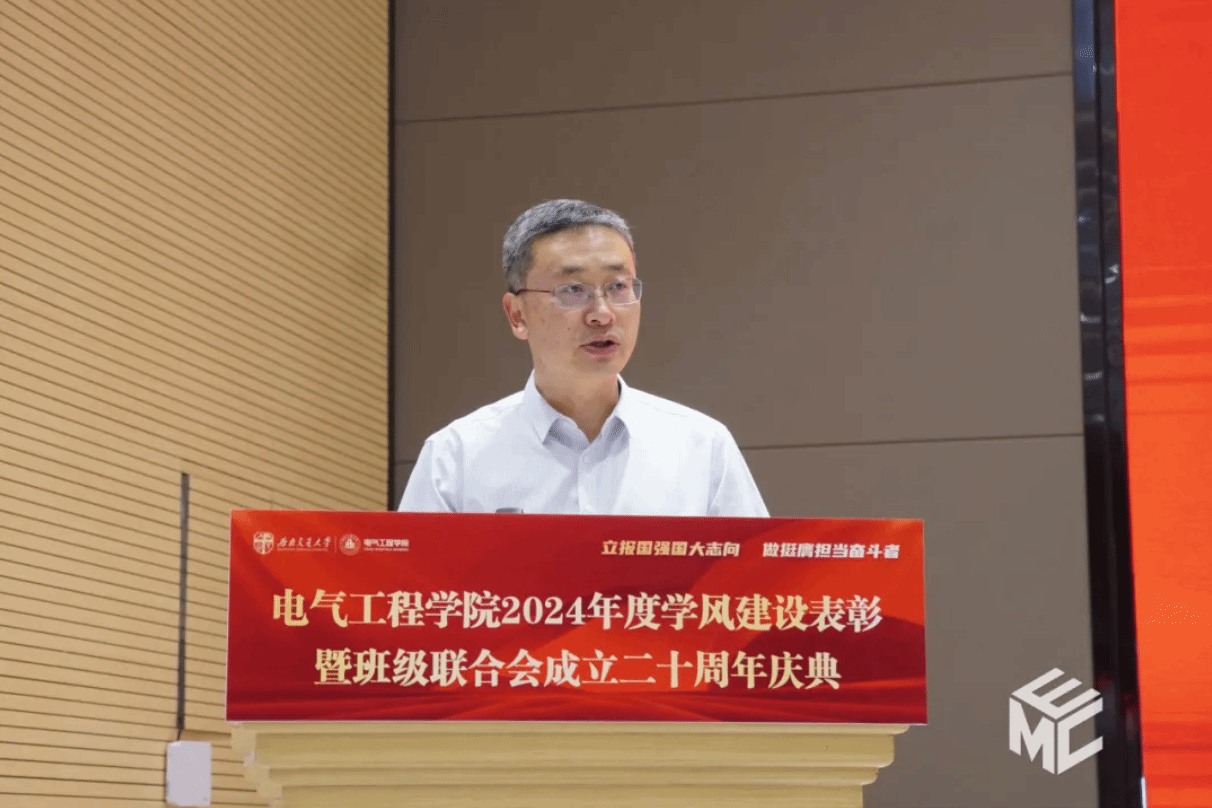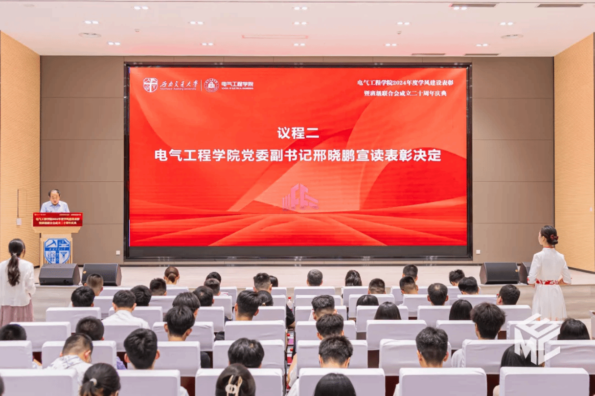 5月24日下午14:30,2024年度学风建设表彰大会暨班联二十周年庆典在犀浦校区双一流会议中心顺利召开。电气工程公司党委书记王斌,党委员工工作部副部长谢力、杨华,公司教务处副处长李静波,公司副经理何晓琼,党委副书记兼副经理、纪委书记王轶,党委副书记邢晓鹏,副处级组织员魏振兴,团委书记张异,公司班级联合会历届指导老师、成员代表,学工组辅导员及本科2024级全体班委参加大会,大会由张异主持。