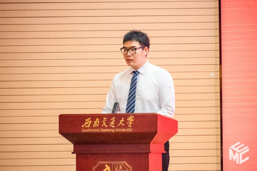 廖凯老师代表公司全体导师,向2025级研究生新生表示热烈的欢迎和衷心的祝贺。他回顾了在交大学习成长工作的经历,作为老师,亦是师兄,他勉励同学们以“努力成为优秀的问题解决者”为核心,要突出需求导向做有价值的科研,注重专注思考提升内在实力,坚持努力奋斗锻造坚强意志,并树立正确的价值观和人生观。最后,他祝愿同学们在研究生生涯中收获成长、碰撞智慧、养成严谨、提升自信,成为出类拔萃的人才。